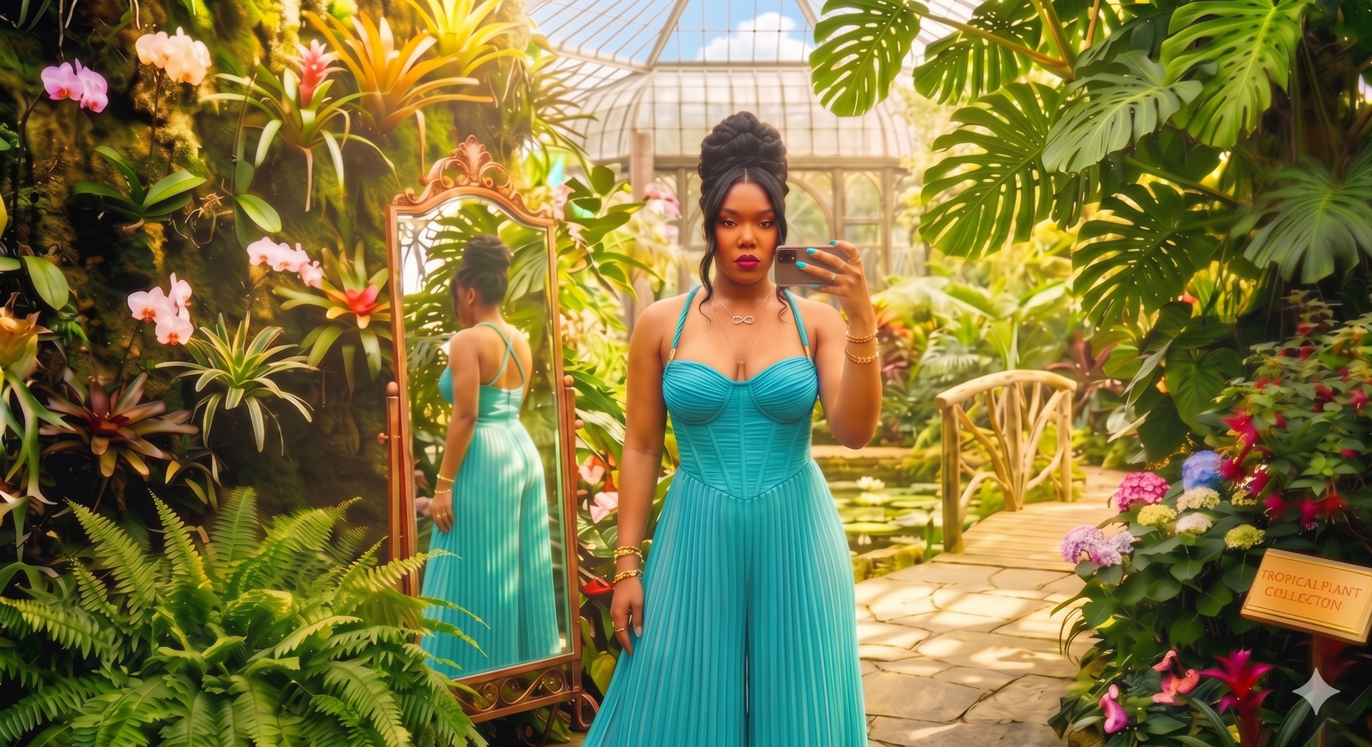 The Aesthetic: This look perfectly captures the "Soft Baddie" vibe—balancing heavy gold jewelry and bold makeup with delicate floral accents and a sweet color palette.